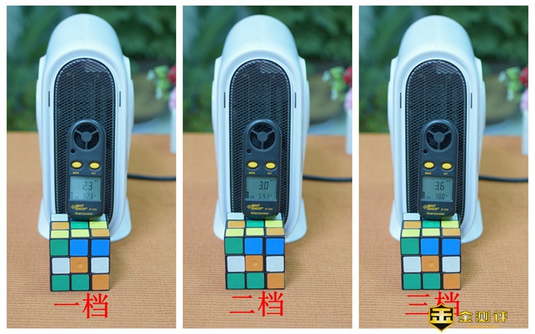 暖风机这类产品没有非常特殊的功能,咱们主要来测试一下它的风速风温吧:经实测,一档(500W)模式下,出风口的风速2.3米每秒,温度约为33℃;二档(1000W)模式下,出风口风速为3米每秒,温度约为54℃;三档(2000W)模式下,出风口风速为3.6米每秒,温度直接飙升至70℃