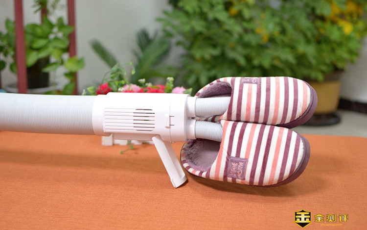 烘鞋器跟通风筒对接后,可以将热风立体吹送到鞋内,起到快速烘鞋的效果,拖鞋等轻质量的鞋子可以直接支撑在烘鞋器波纹管中,如果是皮靴等重量较大的鞋子,也可以将烘鞋器和送风波纹管进行角度调整进行烘烤