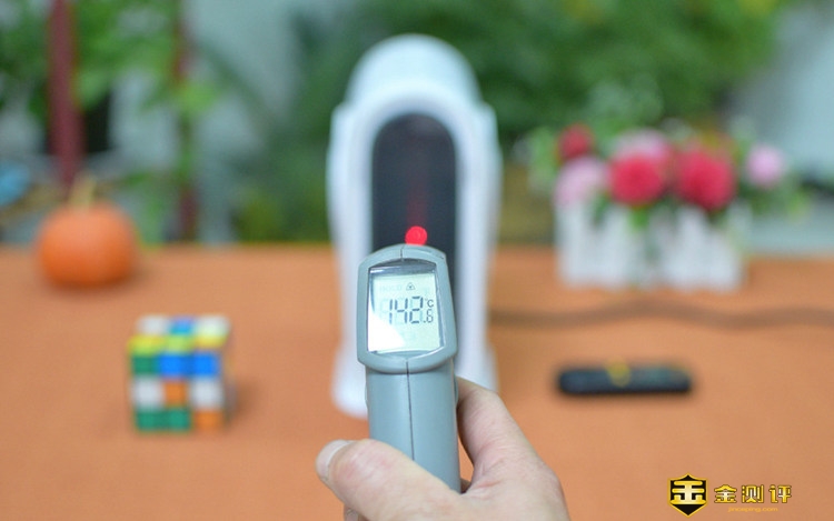 三档模式下,使用测温枪实测钢网内侧温度约为142℃,仔细观察能够看到暖风机内部的发热丝呈红橙色,但经过钢网的格挡,实际上不注意的话是看不到内部有光亮的,减少了很多暖风机强光的视觉污染