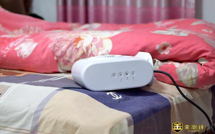 背面有四枚按键设计,从上往下分别是开关键、冷暖烘被选择键、风量大小调节以及定时开关按键,定时功能支持15分钟、30分钟和60分钟三档调节功能