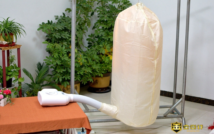 将配套的干衣袋同伸缩波纹软管对接,将潮湿的衣物放在干衣袋内,并挂起来,开启小尼熊暖风机,将热风输送至干衣袋中,能够很快的将衣物烘干,碰上接连的阴雨天气,这个功能实在是太实用了