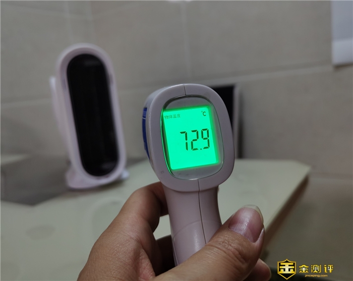 开机之后,选择暖风模式,暖风机几乎做到了即开即热。它能迅速进入发热吹暖风状态,并且能够保持恒温状态。在距离60cm左右的距离,测试温度接近72.9度,而且还是偏离中心来测试,正向的话温度会更温暖!