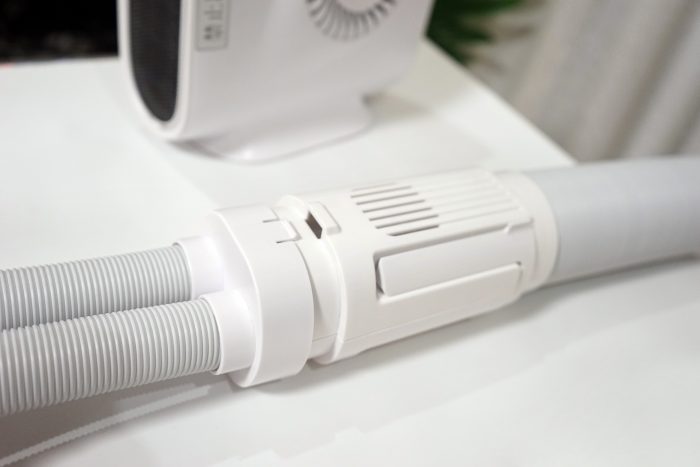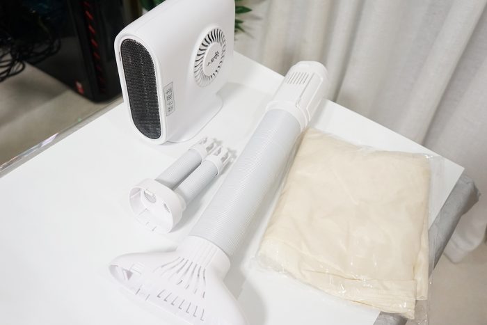 初次使用这类产品笔者是持有疑问的,因为接触过的暖风机不少,有些保暖效果并不好,更甚至有的宣传净化空气,还能加湿!但最重要的取暖功能却做的不行!对于这样的产品笔者是排斥的!言归正传,小尼熊多功能暖风机初次的印象还不错,纯白设计,外观算是中规中矩,侧面有小尼熊LOGO,全家福包含了:暖风机主机、外接烘鞋器、3D循环出风接口、超大容量干衣袋,相对单纯的暖风机产品,这样的设计能更大的突出产品在冬季的使用频率!