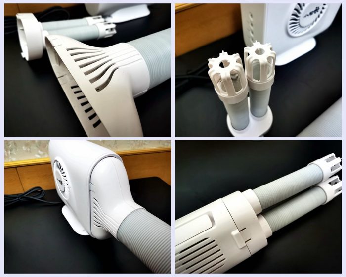 除了暖风机,@金测评 还提供了3D循环出风接口、烘鞋器和干衣袋等配件,借助它们就可以实现烘衣、除螨、烘鞋等多种功能。