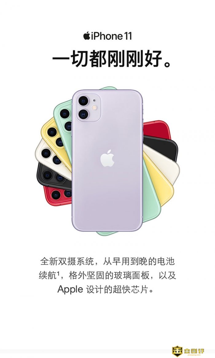 iPhone 11(购买地址)是2019年中的低价iPhone,共有白、黑、绿、黄、紫、红六款颜色,前后双玻璃造型,中框为铝合金材质。其采用6.1寸 LCD Liquid Retina全面屏,分辨率1792 x 828,像素密度326ppi,同样支持DCI-P3色域。整机三围150.9*75.7*8.3mm,重量194g,整体尺寸大小较上代无明显变化。