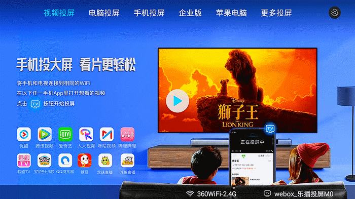 最后在来说一下投屏,WEBOX GT有一个乐播投屏,这个对于喜欢手机上观看视频,又觉得手机屏幕小的人群来说,绝对是福音,通过乐播投屏可以实现视频投屏、电脑投屏、手机投屏、企业版投屏、苹果电脑等非常多的投屏方式。
