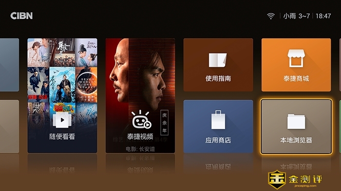 WEBOX GT的系统可以说是做的非常的精简,所以平时主要观看有两个方面,一个是随便看看频道,另外一个就是泰捷自主的泰捷视频了,先来说一下随便看看这个频道,这里面的内容是每天都会更新的,其中包含了海量且不同类别的影视资源,有电影、热播剧、综艺、动漫、少儿、纪录片等等,通过遥控器的上下键可以自由的选择观看,而且都是超清影视,不卡顿。