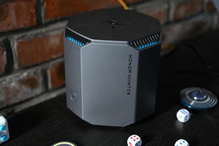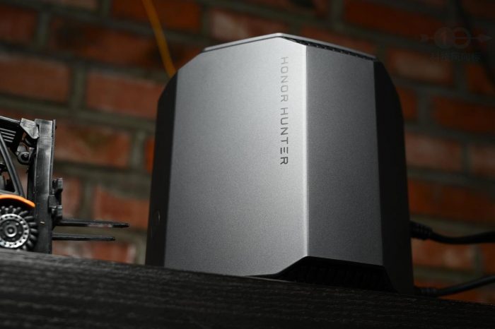 我开始从金测评上看到这款游戏路由的时候,首先是被它的设计吸引的。荣耀猎人游戏路由本身采用的造型并不是传统的天线设计结构,所以让人第一眼看上去,会以为它是一台游戏主机。
