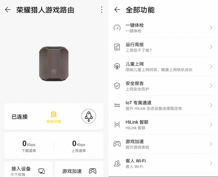 所以未来满足这种高速低延迟,以及大量设备联网的需要,一些专注游戏体验、智能设备联网的路由器开始出现,比如我现在用的荣耀猎人游戏路由,里面就提供了游戏加速服务,而且对于华为荣耀的手机和物联网设备,都可以获得更敏捷的联网表现。