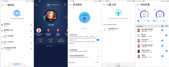 由于启用了路由市场功能,所以在路由系统自带功能方面做了简化调整。但在核心功能方面依旧保持不可撼动的地位,即便不使用路由市场的应用组件,依旧可以实现一键体检、运行周报、儿童上网、游戏加速等特色功能。此外新增的双网双通功能更是令路由速率获得升华,对于拥有多条宽带的用户可以通过线路规划实现更为合理的网络利用。