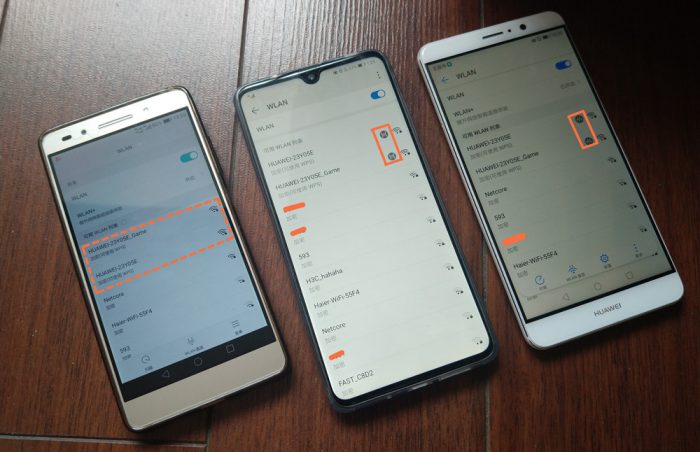 相信很多小伙伴在购买了华为路由器之后,一直都很好奇那个“H”标识按钮的用途,多数用户都以为它只用于华为生态LoT设备配网用途,更有一些用户纯粹觉得好玩通过点击用以欣赏其忽明忽暗的呼吸灯光效果。 其实,它的用途挺多的,除了对物联设备支持作用以外,它还能够为高版本的EMUI设备提供一键安全联网的操作。正好笔者手上有几款不同时期的华为手机,通过WIFI界面可以看出,最左侧那款较老的EMUI系统不具备一键联网标识,右侧的两款高版本EMUI系统手机在WiFi界面下分别出现了与路由器相同的“H”标识,这种的可以通过“H”实现免密快速配网功能。