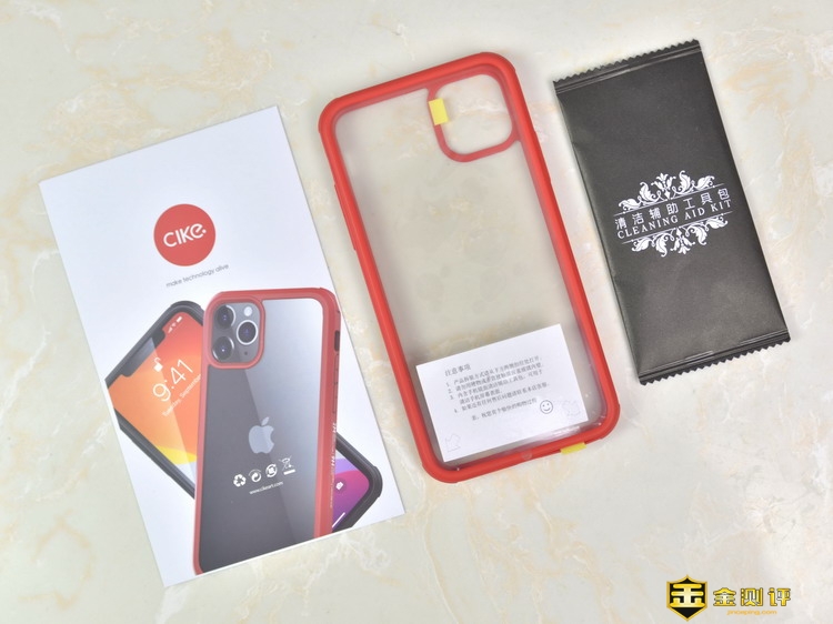 cike小红壳patron iPhone 11 Pro Max保护套的全家福包含:cike小红壳patron iPhone 11 Pro Max保护套本体,清洁辅助工具包和质保卡。