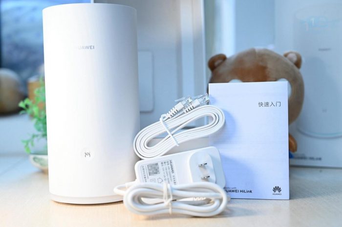 华为A2这款路由器的配件比较基础,包括了一件专用的电源适配器,以及一根网线。这两件配件的线缆长度还算不错,特别是网线还采用的是支持千兆的扁平设计的结构,一般使用来说够用了。