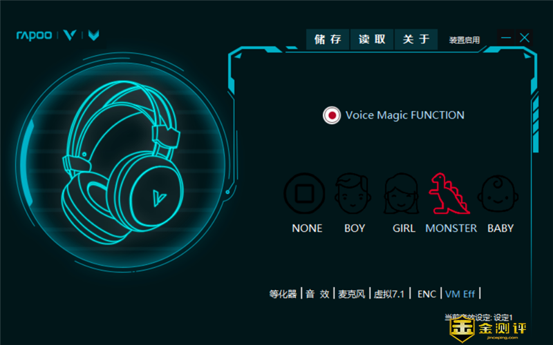 通过专属的驱动软件还可以实现魔法变声功能,可将原声变为男孩、女孩、怪物、婴儿4种音效。