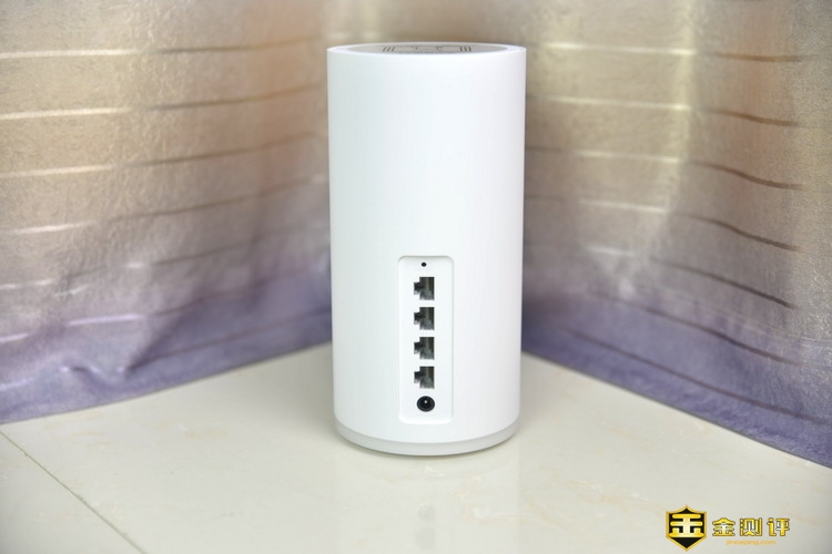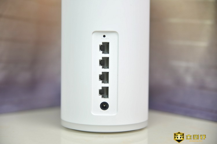机身的背面是接口的集中地,从上到下分别是Reset插孔,4个WAN/LAN自适应千兆网口和电源接口。