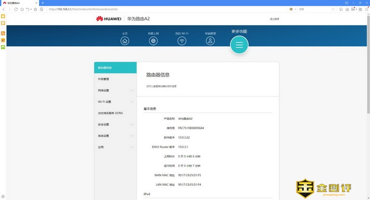 在更多功能里,可以查看路由器的信息,设置各种功能,目前我已经将路由器的固件升级到了最新的版本。