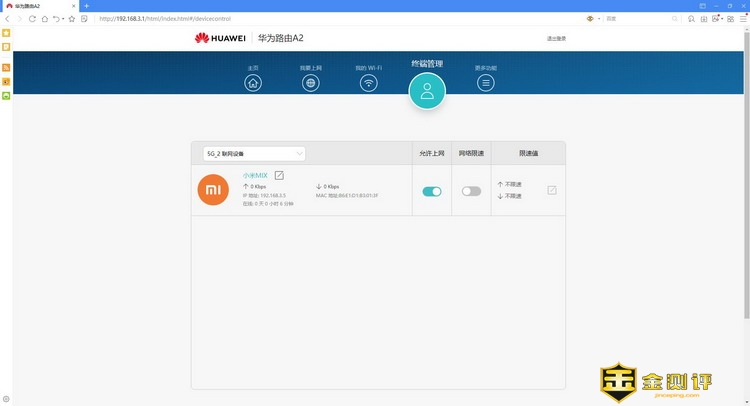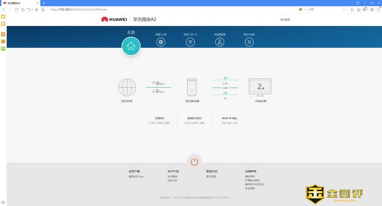 华为路由A2的配置非常简单,全程跟着提示操作就行,如果需要拨号也可以连接旧路由直接获取,无需再次输入,很方便。我现在使用的华为路由A2是没有使用智联功能的,独立的,所以全部功能菜单都启用,如果使用了智联功能做了子路由,那么“我要上网”和“终端管理”这两个就会变成灰色,而且下方拓扑图里,路由器的前端还会多个主路由。
