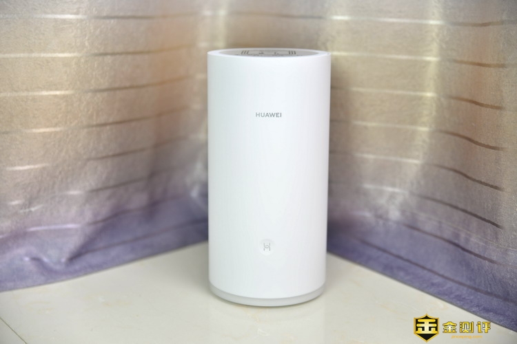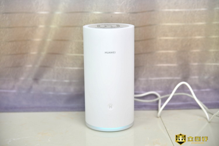 华为路由A2是圆柱形的机身外观设计,尺寸是104*104*210.5mm,机身采用白色的塑料材质,整体外观看起来相当精美,这样的外观,摆放在哪里都可以作为装饰品融入到周围环境中。机身上印有华为的品牌Logo。