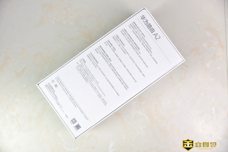 华为路由A2的包装盒颇为精致,而且坚固,包装盒的正面右上角是华为的Logo,左上角是产品的系列和型号,中间则是产品的实物图,下方是华为智联的标识。包装盒的背面介绍了华为路由A2相关的功能特点。