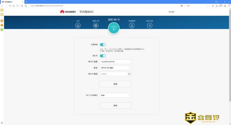 华为路由A2支持3频2200M高速WIFI,是通过2.4G频段实现400M,5G(低)频段实现866M,5G(高)频段实现866M,三频合一来达成的。在我的WIFI里,可以设置三频合一,也能将三个频段分开。