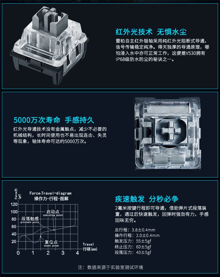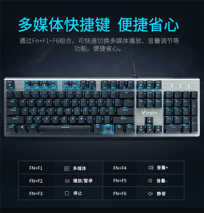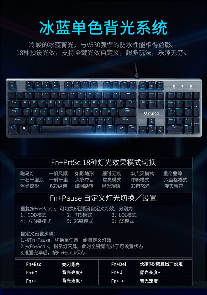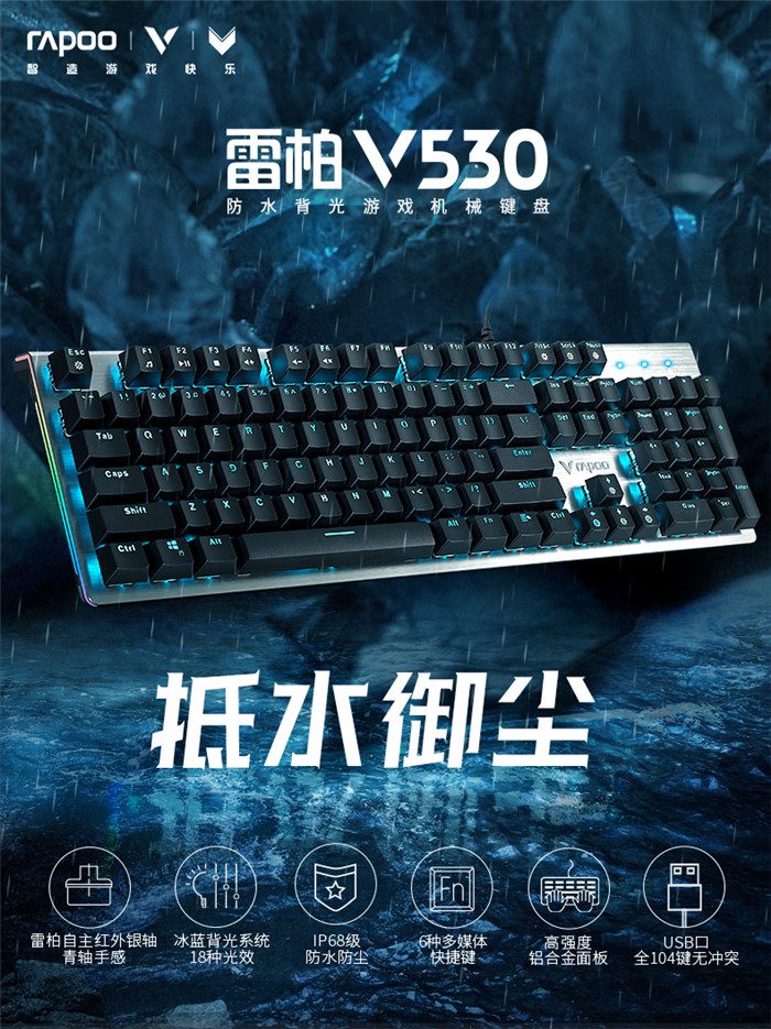 ◆产品链接:雷柏V530防水背光游戏机械键盘