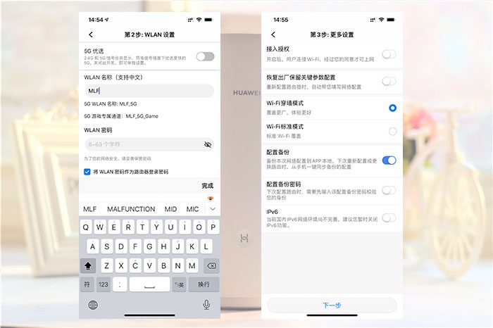 进入到配置步骤后,我们设置好无线网络的名称、密码等之后就成功连接到路由器了。