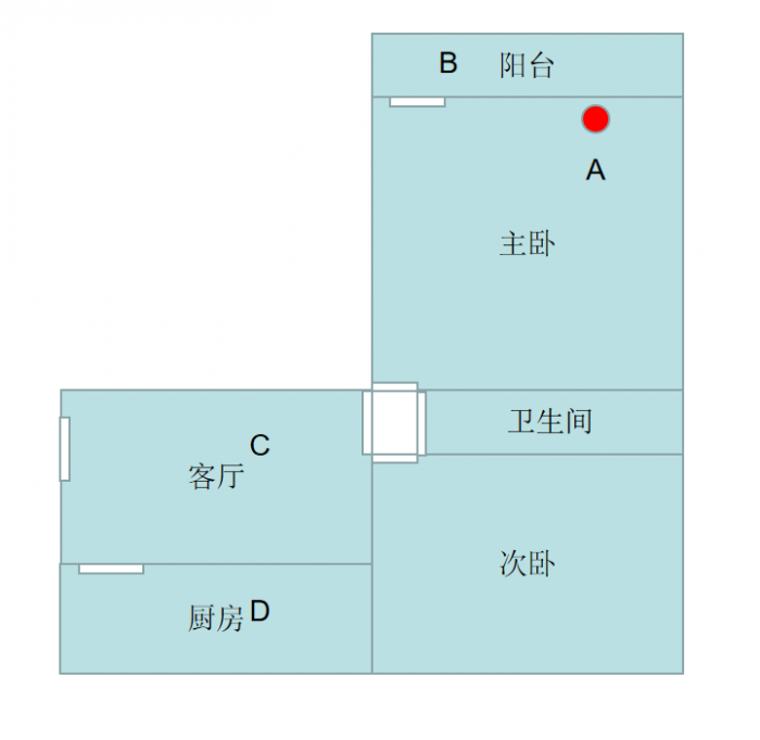 看完APP设置,下面我们看看路由器的实际网速怎么样。我的家居户型图如下,面积在115平米左右,路由器放置在A点,我们分别测试A、B、C三点的网络速度。