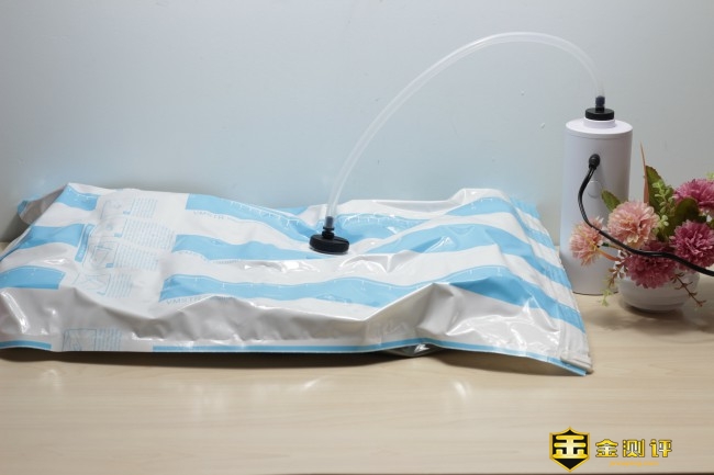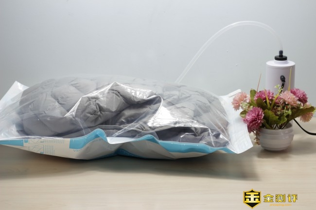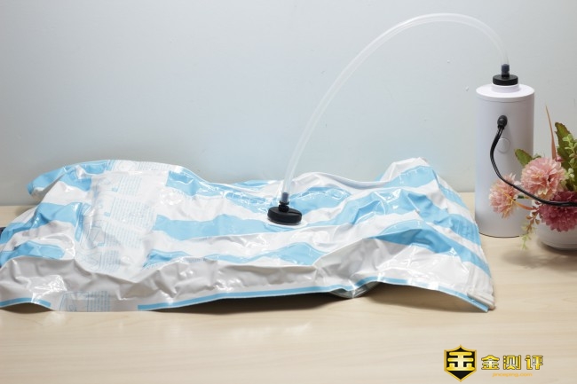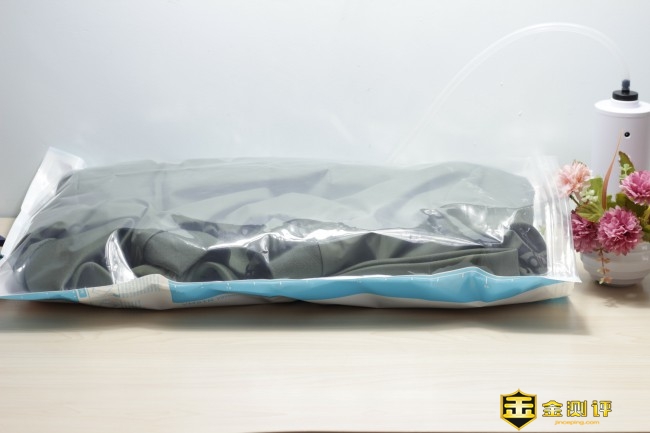 整个抽真空的过程速度还是非常快的,半分钟就能完全的吸附到位,此时可以看到收纳袋体积逐渐在变小,证明出抽真空也在同时进行。