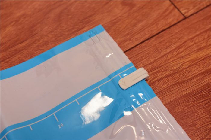随机附赠的4个收纳袋上都有圆形的抽气孔,抽气孔通过圆形的盖子进行密闭。