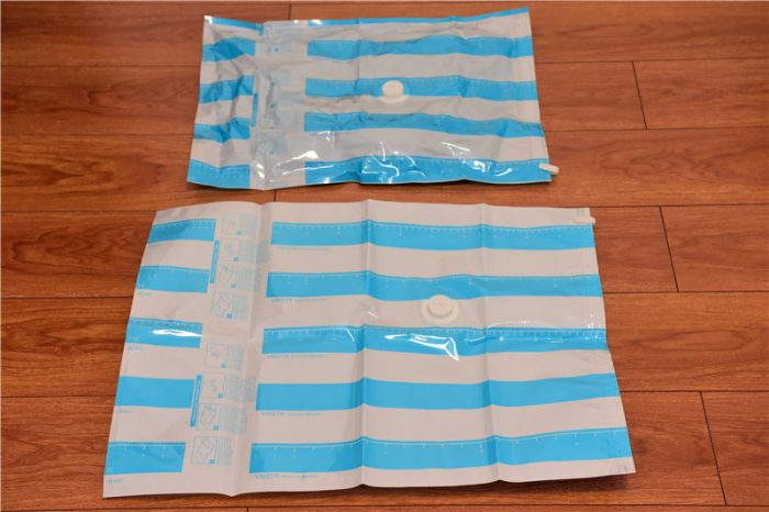抽气完成后,真空机会自动关机,同时我们可以看到,收纳袋已经由原来蓬松的状态变为收紧的状态,厚度大幅削减。