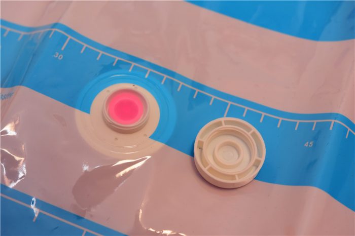 打开盖子后我们可以看到,密闭孔内还有一个粉色的防倒吸胶垫。