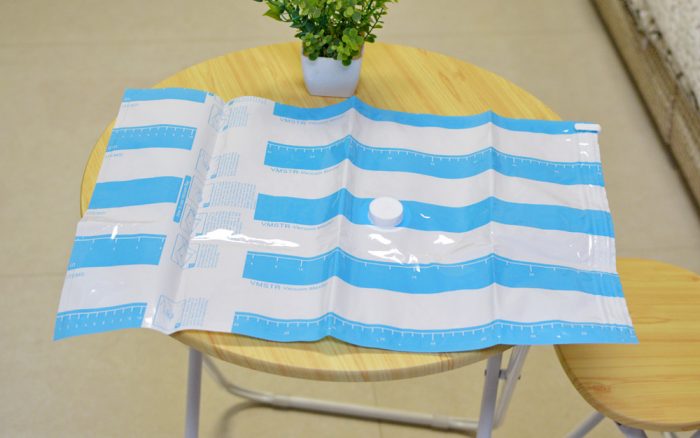 顶部的吸气口内侧有防漏气的密封胶垫,吸气口的尺寸是按照行业规范设计,所以也是可以和市面上主流的真空收纳袋通用,如果你手里买过其它品牌类似的收纳袋,也是可以使用的