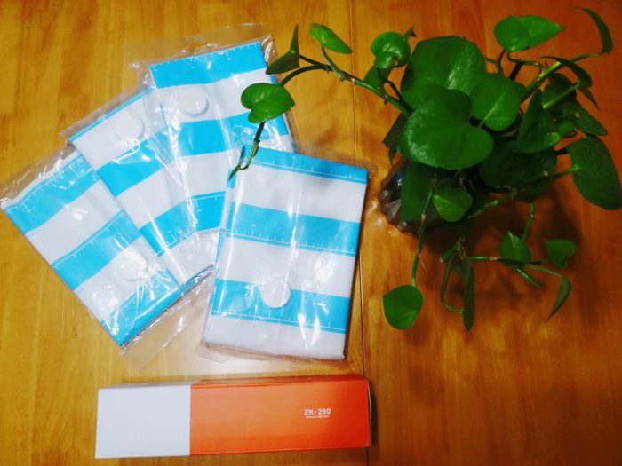收到快递,是一个简单的纸箱,拆箱前,笔者还担心里面的东西会不会有所损坏,但是打开后,发现店家还是非常用心的,里面共5件物品(收纳袋S、M、L、XL号各一个以及一个ZK190真空收纳机的产品包装盒),均有额外的包装防护。