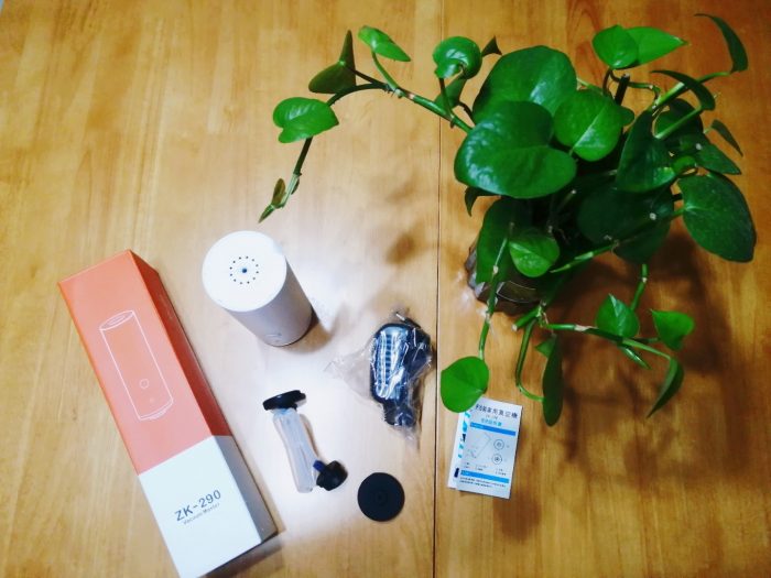 打开ZK190真空收纳机的产品包装盒,里面共四件物品:ZK190真空收纳机、电源适配器、软管适配器、产品说明书。