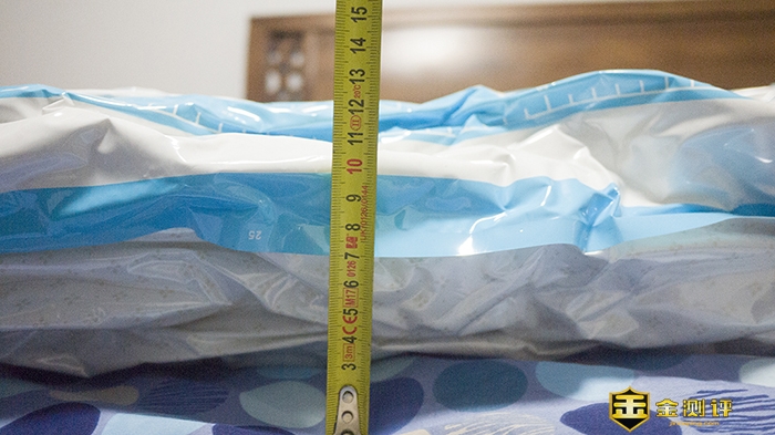 被压缩的被子没有空气膨胀,样子更加纤薄,实际测量厚度为12cm,不仅厚度变小,长度也有一定缩小,长度缩小大概16cm,比起自然放入柜子少占用0.016m³,按照上海平均房屋价格来计算,你就至少省了1000元。