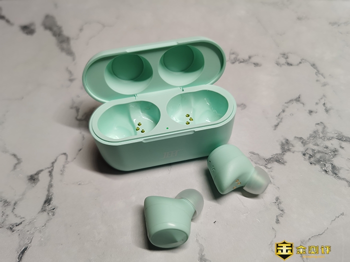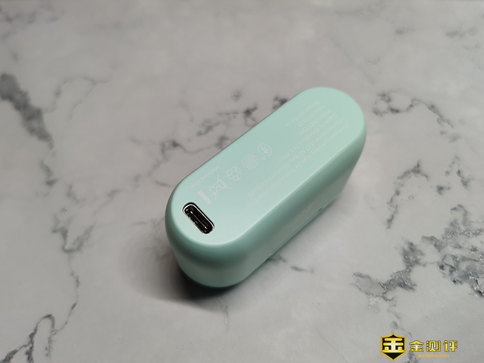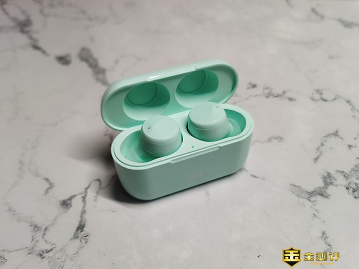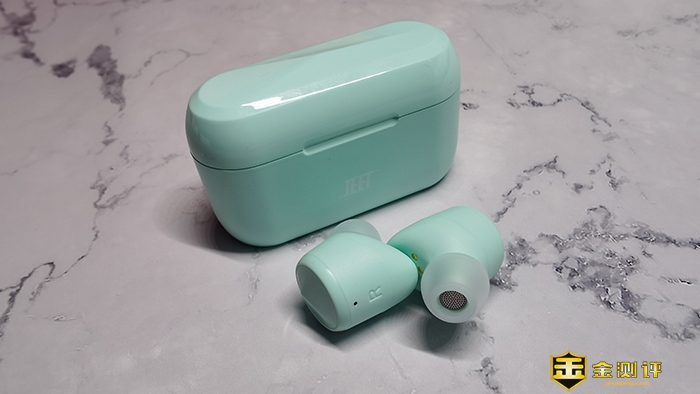 先来看下电池仓,JEET AIR Bass本次电池仓的设计和AIR系的区别不大,外观上仍是圆润的长方体设计,上下开合打开,开合标志明显可轻松打开,正面仅有JEET的logo图标其他纯色,整体上很简洁大方。