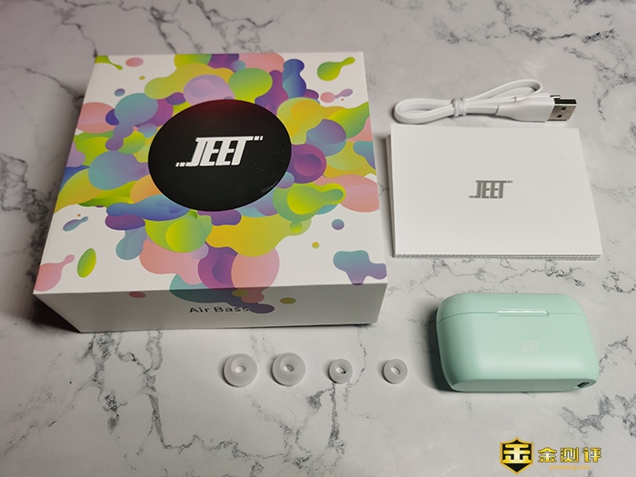 在重量上,JEET AIR Bass双耳拥有小巧的机身,材质使用了超清聚合物分子材料做到了单耳仅有4.9g的重量,真可谓是轻如鸿毛了,机身虽小,但是可尺寸使用7小时间。
