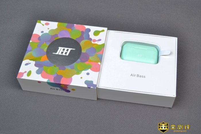 打开包装盒,泰捷JEET Air Bass TWS真无线运动蓝牙耳机,瞬间映入我们的眼帘,拿到的是夏果绿的配色,干干净净超级美。