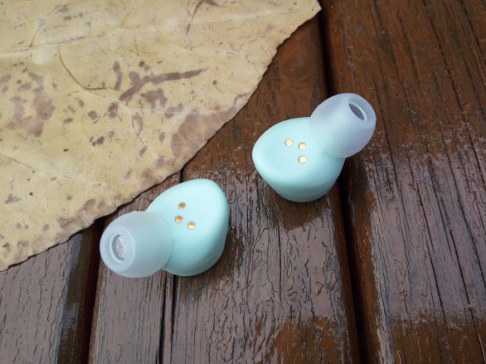 耳机整体小巧轻便,单个耳机的重量是4.9g,携带或者佩戴都十分便捷轻便,不会给耳朵造成任何的负担。采用了三点式磁吸充电触点,充电拿取还是比较方便的,采用了入耳式设计,能与耳朵亲密贴合,使用时不易脱落。