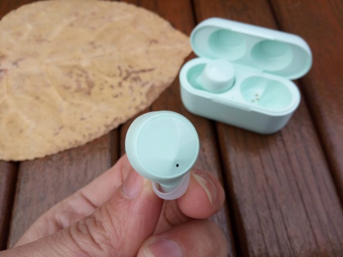 耳机同样采用了钢琴同级高光封釉工艺,与马卡龙治愈色的结合,棱状设计很有立体感,在光线照耀下像镶嵌了一块宝石,虽然比较耐看,不过容易收粘指纹。侧面有比较清晰的L/R标识,方便分清左右耳机进行佩戴,还设有一个MIC和一个指示灯。