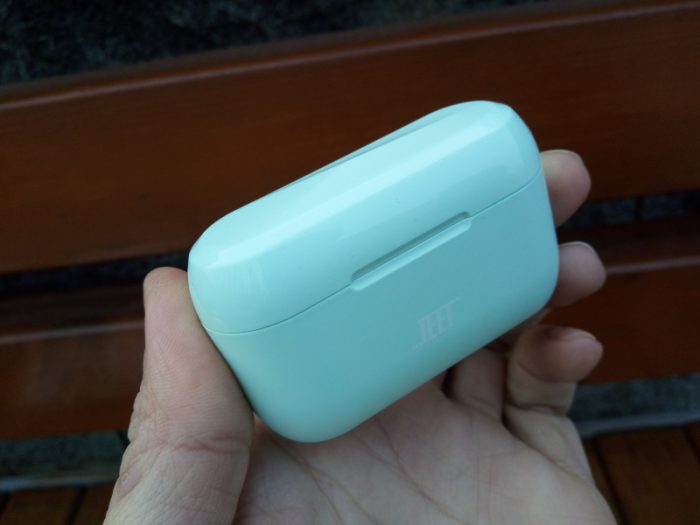 JEET Air Bass真无线耳机的包装盒风格变得很多,以往都是比较简约,现在采用了多彩设计,显得比较清新,符合现在年轻人的口味。
