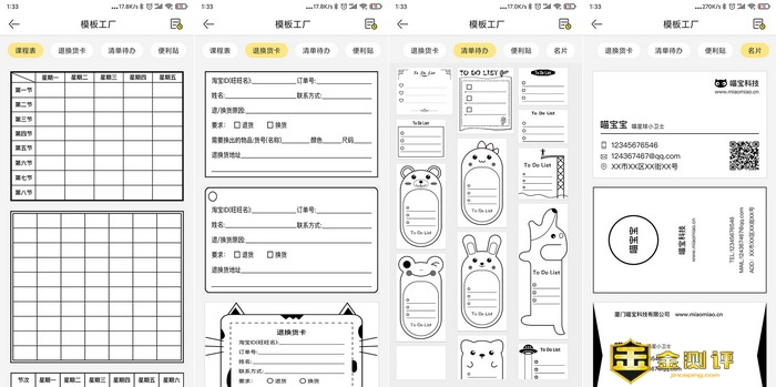 打印模板里有课程表,退换货卡,清单待办,便利贴,名片等内容。我最近用最多的就是退换货卡和清单待办,我字丑,退换货或售后都要附纸条,为了不让售后眼瞎,还是不要手写用打印的比较好,清单待办以后会用的越来越多,好记性不如烂笔头,这个我是一直奉行的,不过之前都记在手机里,没看到我也经常忘了,所以还是打印出来,放在桌上或者贴显示器上,完成一个划掉一个,不会遗漏。名牌我现在是觉得作用不大,毕竟打印纸打出来的太薄,等什么杀死后可以打印厚度克数更大的耗材时,就实用了。