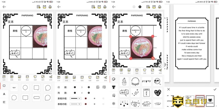 在文本编辑里,可以输入纯文本,插入表格、图片、贴纸、主题边框,还能插入插件和手写涂鸦。这样的功能组合起来,可以打印出来的内容就丰富了,基本上可以说是只有想不到,没有做不到的。