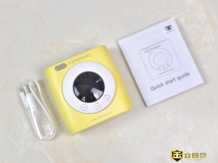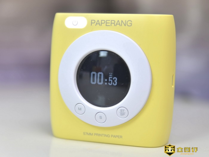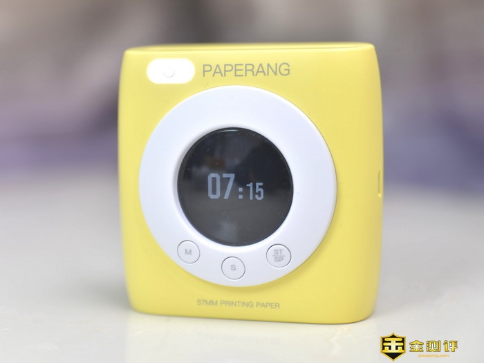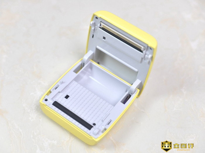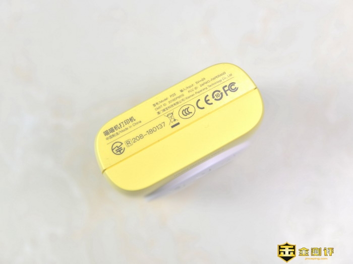 喵喵机二代P2S打印机的三围是83*85*45mm,重量是160克,整体还是比较轻巧便携的。外观设计也是相当圆润,果冻黄的颜色看起来也是相当可爱。乍一看,颇有拍立得的感觉。机身正面中间是品牌Logo,左上角是开关按键,中间则是柔性屏幕,屏幕下方还设计有3个按键。