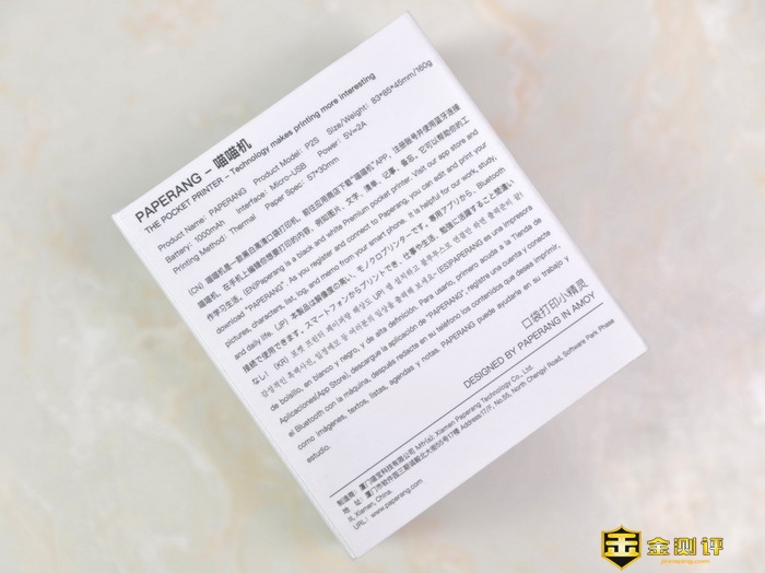 喵喵机二代P2S打印机的包装盒不大,但是重量并不轻,包装盒正面左上角是品牌Logo,中间是产品实物图,右下角是支持的操作系统。包装盒的背面和侧面介绍了产品相关的功能特点。