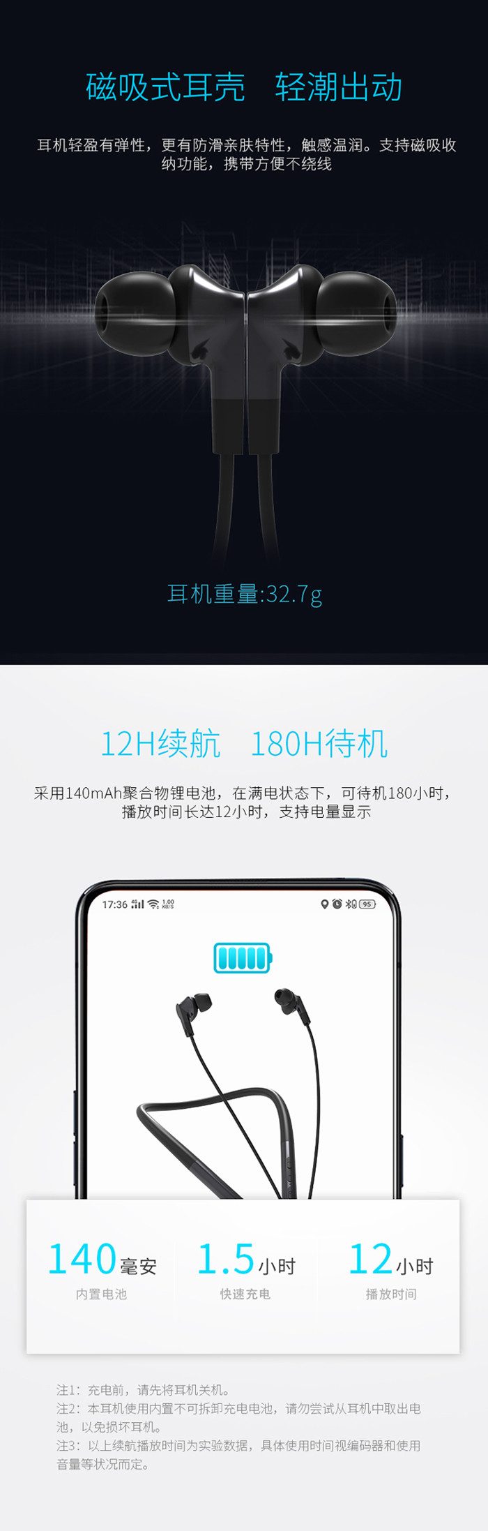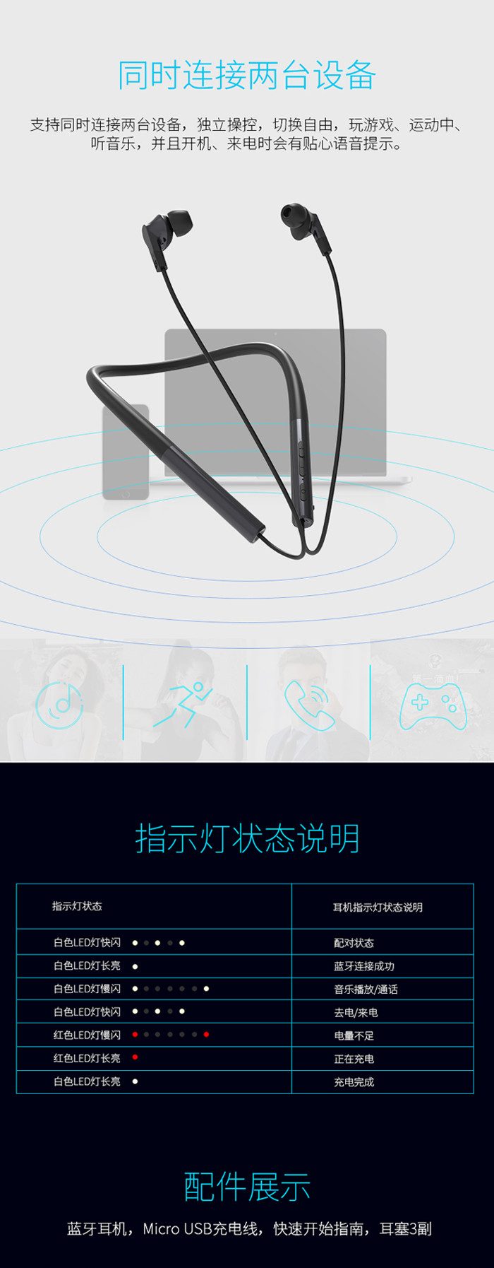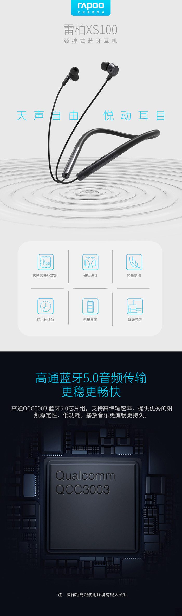 ◆产品链接:雷柏XS100颈挂式蓝牙耳机