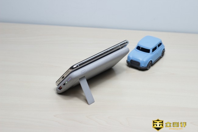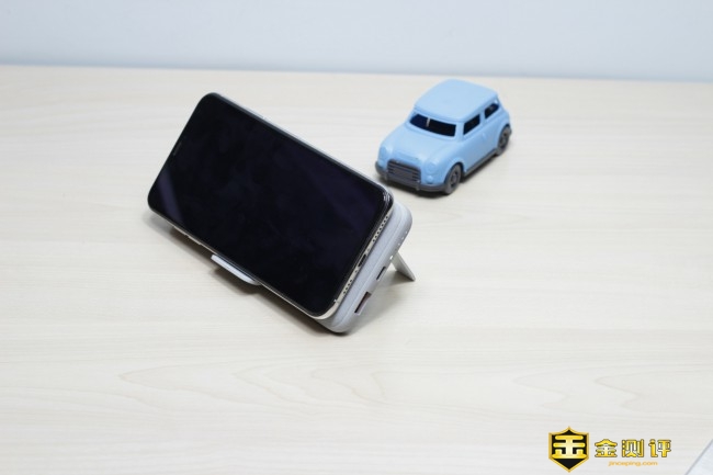 南卡无线充电宝POW-2设置了专属的脚撑支架,在需要使用时打开就能轻松成为45度角支撑。