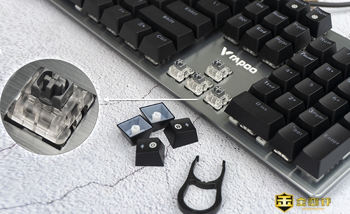 雷柏V530在键帽方面,采用的是双色注塑工艺,其根本就是内外两层,而对比其他形式的键帽,双色注塑键帽有着透光均匀、耐磨损性强等优点,更加适合长久使用,另外键帽的表面采用的是磨砂处理,可以给我带来不错的手感。