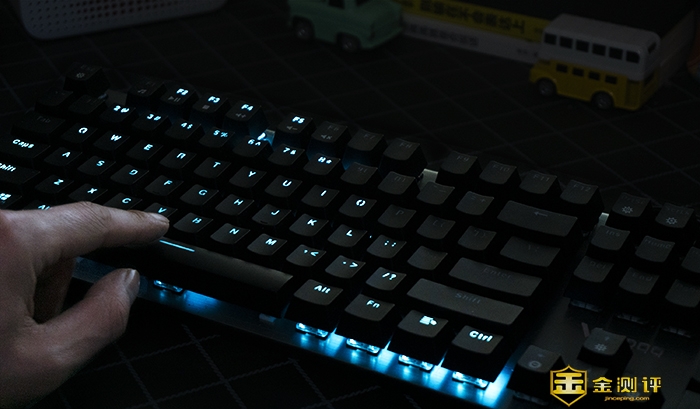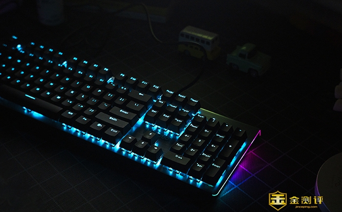 灯光可以说是机械键盘的灵魂之一,它不仅为我们照亮了每一个按键,还让机械键盘成为夜晚的一道美丽的风景,雷柏V530给我们带的是蓝色背光和两侧的RGB跑马灯,在夜晚简直酷炫到不行,这样的灯光设计可以说非常适合我。