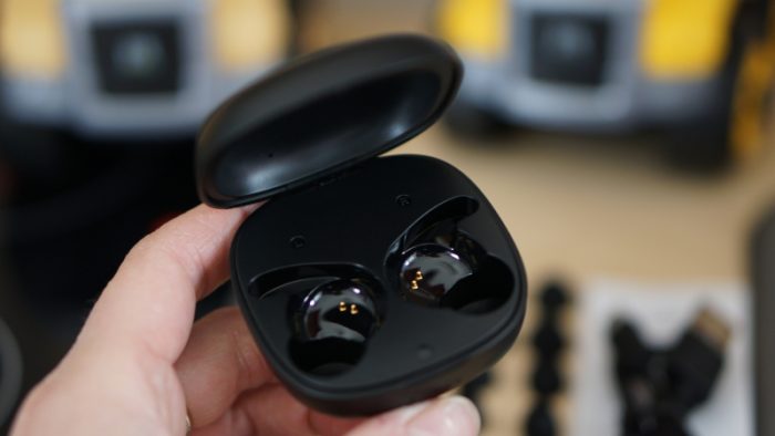抽拉式的外盒打开之后就可以看到两枚耳机和充电仓分别放置在了防震海绵中,毕竟也算是比较精密的数码产品,妥当的保护还是很有必要的。